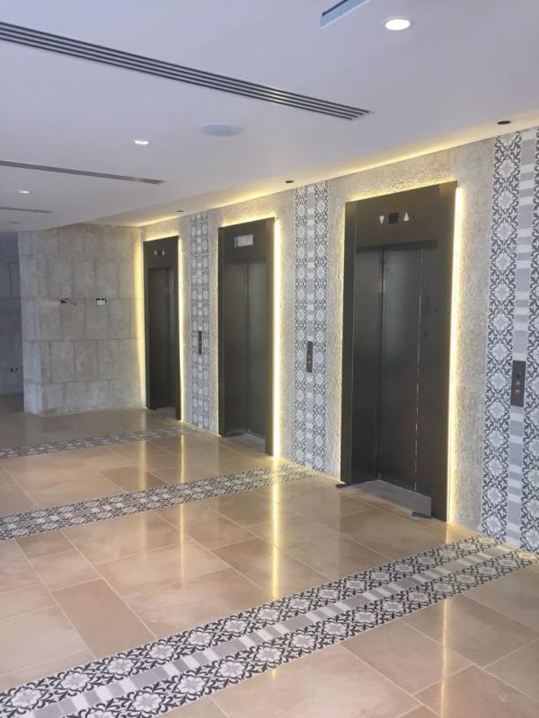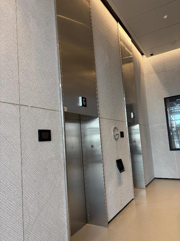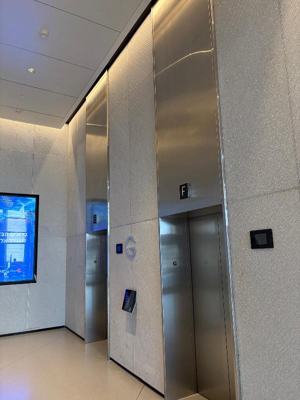 התאמה בין ציפוי המשקופים לחיפויי תא המעלית והלובי יוצרת מראה הרמוני ואחיד.